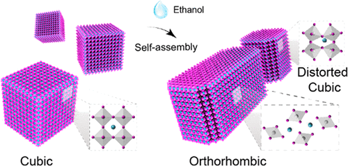 ★ Polar Solvent Induced Lattice Distortion of Cubic CsPbI3 Nanocubes and Hierarchical Self-Assembly into Orthorhombic Single-Crystalline Nanowires