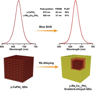 ★ Highly Stable and Spectrally Tunable Gamma Phase RbxCs1–xPbI3 Gradient-Alloyed Quantum Dots in PMMA Matrix through A Sites Engineering