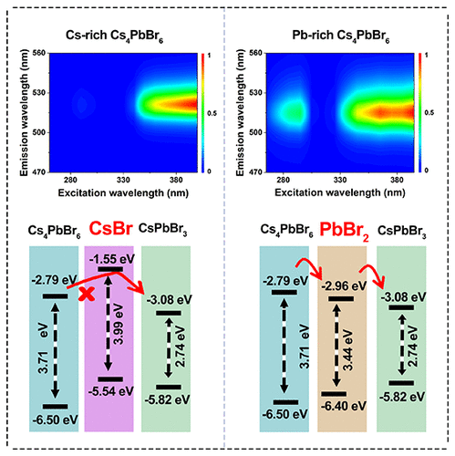 ★ Interlayer Determined Photoluminescence Excitation Properties of Cs-rich and Pb-rich Cs4PbBr6 Samples